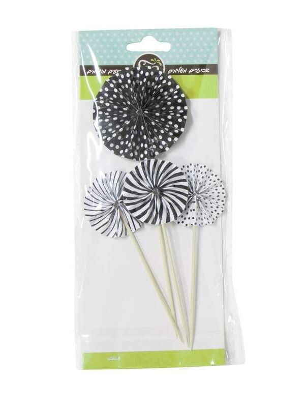 סט 4 יחידות קישוט לעוגה מניפה – שחור