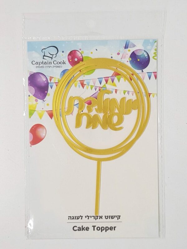 טופר אקרילי מזל טוב עיגול זהב